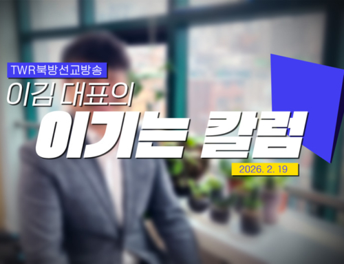 이 소중한 일을 맡은 저와 또 함께하는 우리 사역자들은 하나님의 영광을 떠나지 않게 하려고 최선을 다하기로 다시 한 번 다짐합니다. 먼저 우리의 삶에, 우리가 속한 지역 교회에, 또 TWR과 사역에, 하나님의 영광이 있어 그 영광이 한반도와 전 세계로 전파되기를 소망하며 힘쓰기로 다짐합니다.