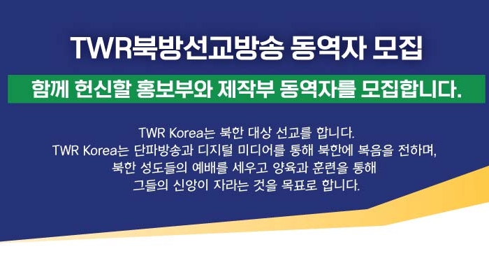 TWR Korea 북방선교방송 사역자 모집(전임)